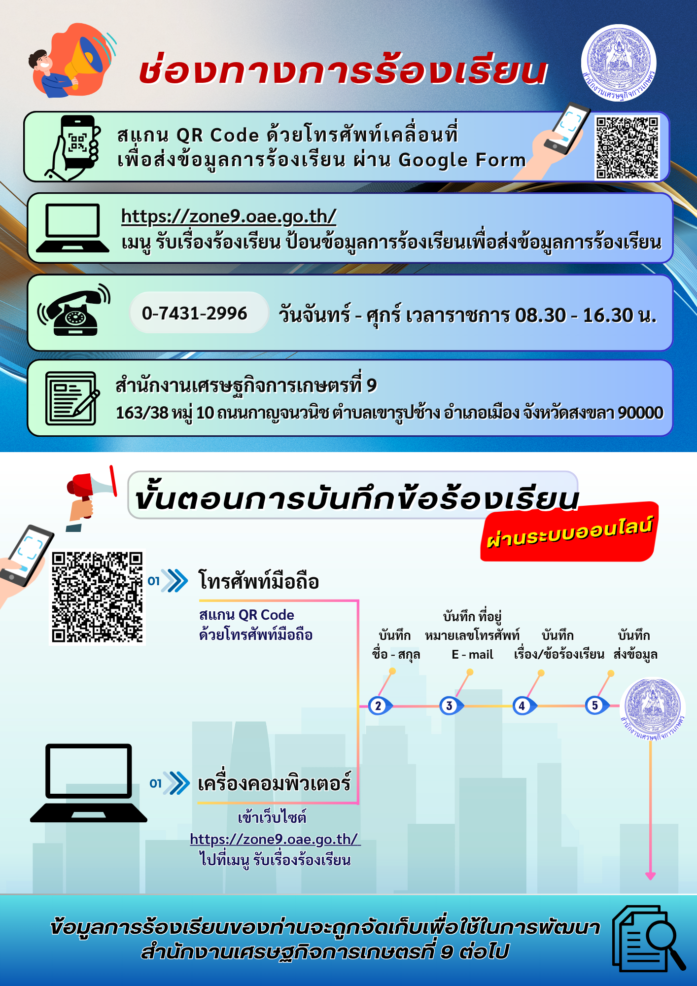 ข้อมูลส่วนบุคคล เช่น ชื่อ ที่อยู่ โทรศัพท์ E-mail จะมีประโยชน์สำหรับการติดต่อกลับ เพื่อขอข้อมูลเพิ่มเติม หรือเพื่อแจ้งผลการตรวจสอบเรื่องที่ร้องเรียน/เสนอแนะให้ท่านทราบ หากท่านไม่ประสงค์จะให้ติดต่อกลับ หรือไม่ต้องการทราบผลการตรวจสอบข้อร้องเรียน/เสนอแนะ ก็ไม่จำป็นต้องกรอกข้อมูลส่วนบุคคลดังกล่าว สศท.9 จะถือว่าเป็นการแจ้งเบาะแสให้ทราบเพียงเท่านั้น ทั้งนี้ สศท.9 จะทำการลบข้อมูลส่วนบุคคลดังกล่าว ออกจากระบบบันทึกข้อมูลแจ้งเรื่องร้องเรียน/ข้อเสนอแนะ ในระยะเวลา 90 วัน นับถัดจากวันที่ได้รับข้อมูล
