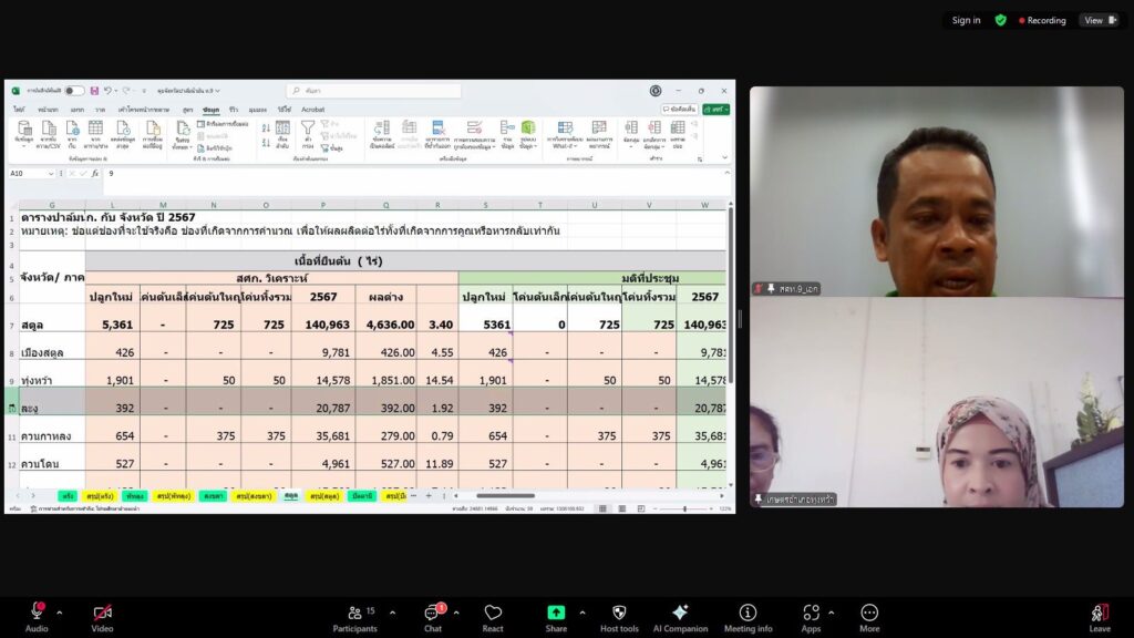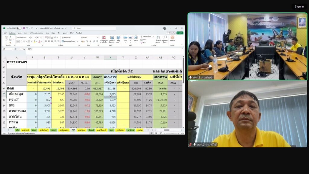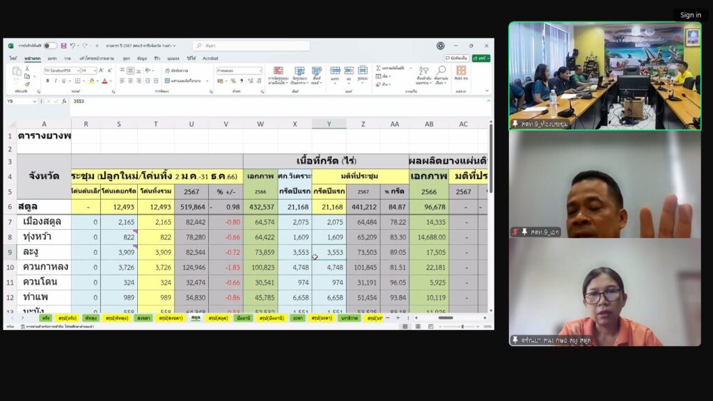 สศท.9 ประชุมหารือและพิจารณาข้อมูลเอกภาพยางพารา ปาล์มน้ำมัน และมะพร้าวผลแก่ ปี 2567 ข้าวนาปี ปีเพาะปลูก 2567 /68 และกาแฟ ปี 2568 ระดับจังหวัด จังหวัดสตูล