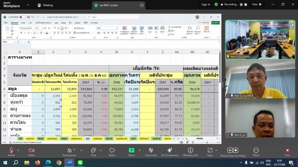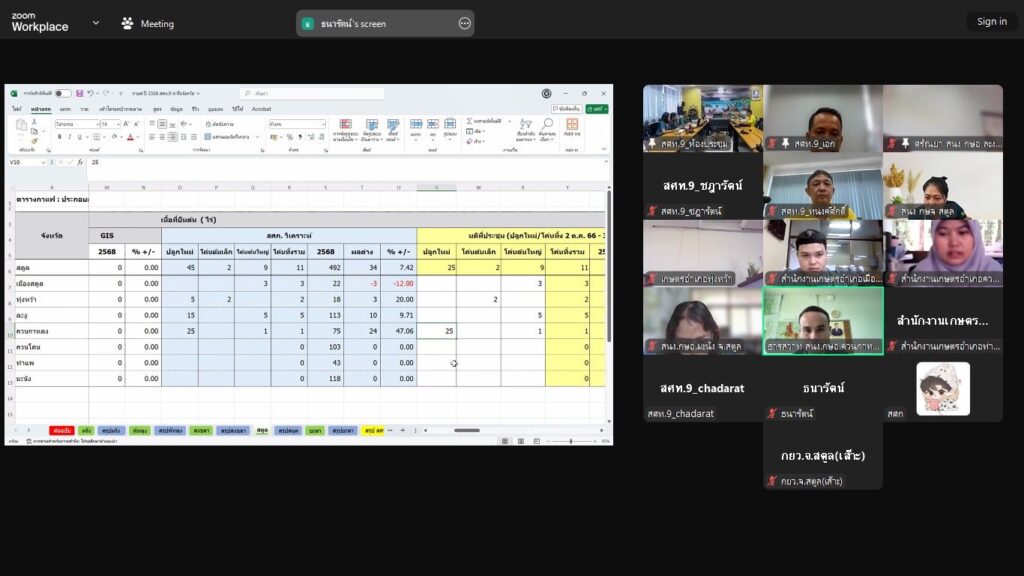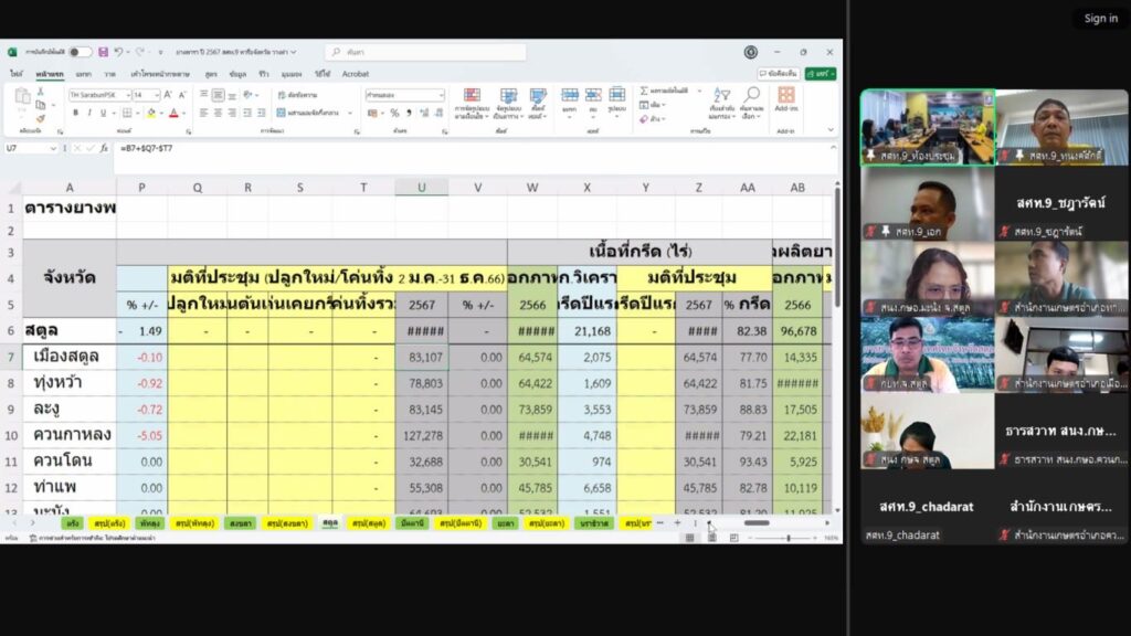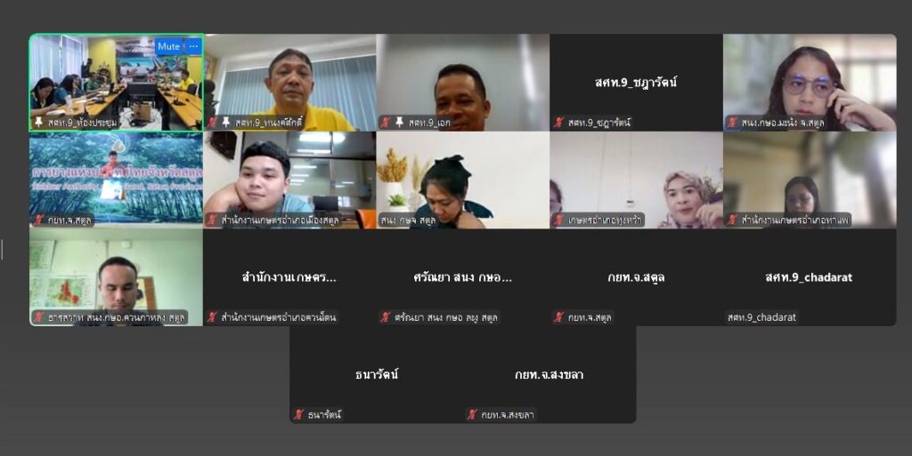 นายไพฑูรย์ สีลาพัฒน์ ผู้อำนวยการสำนักงานเศรษฐกิจการเกษตรที่ 9 (สศท.9)  ได้มอบหมายให้นายทนงค์ศักดิ์ ดำรงนุกูล ผู้อำนวยการส่วนสารสนเทศการเกษตร พร้อมด้วยเจ้าหน้าที่ส่วนสารสนเทศการเกษตร สศท.9 ประชุมหารือและพิจารณาข้อมูลเอกภาพยางพารา ปาล์มน้ำมัน และมะพร้าวผลแก่ ปี 2567 ข้าวนาปี ปีเพาะปลูก 2567 /68 และกาแฟ ปี 2568 ระดับจังหวัด จังหวัดสตูล  ณ ห้องประชุมชั้น 2 สำนักงานสำนักงานเศรษฐกิจการเกษตรที่ 9 จังหวัดสงขลา และผ่านระบบ Application Zoom