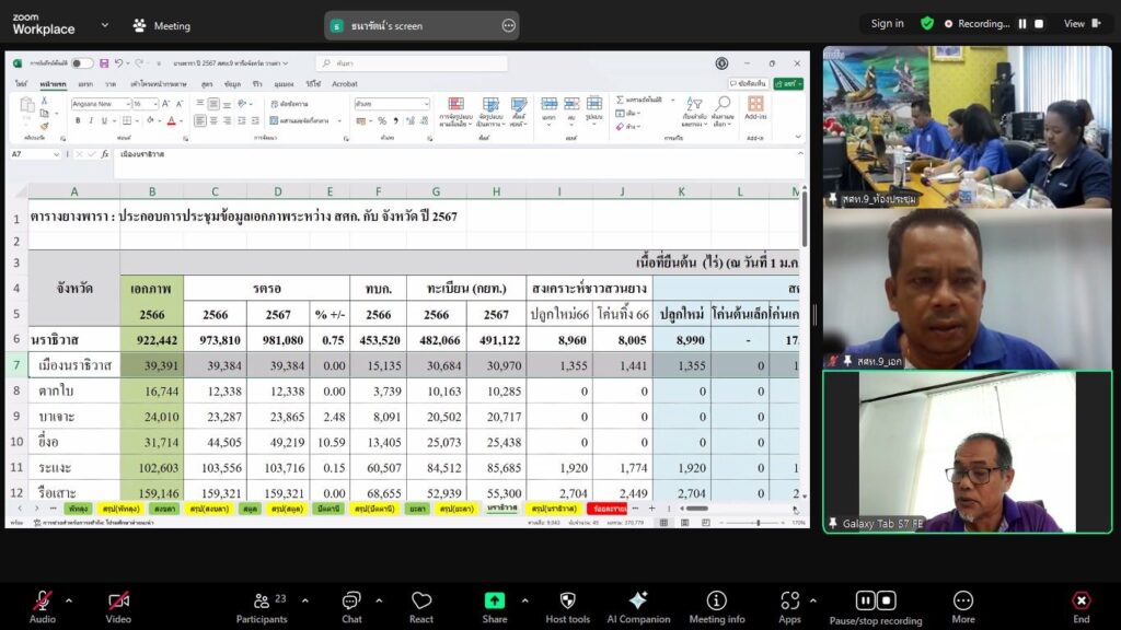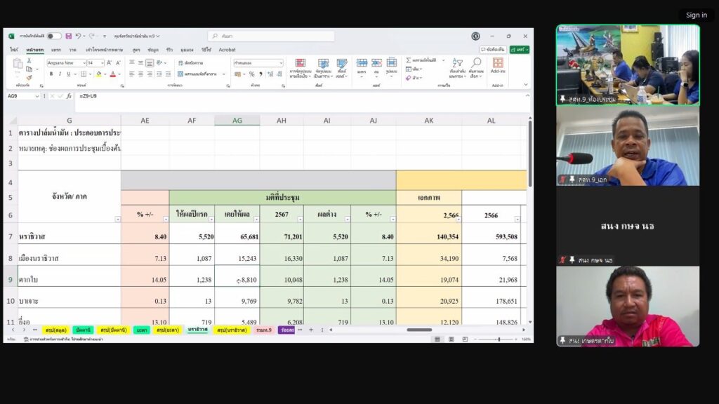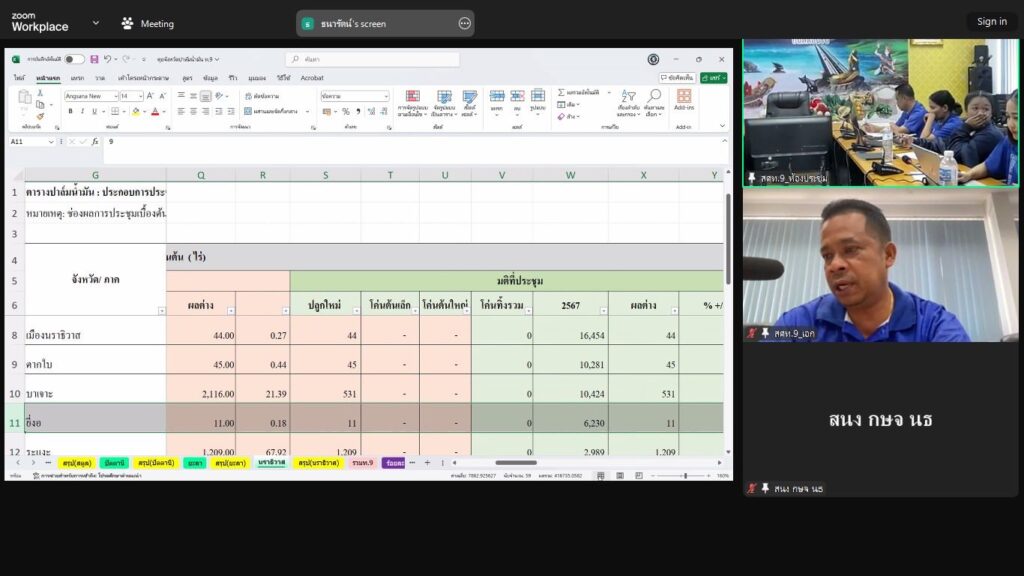 สศท.9 ประชุมหารือและพิจารณาข้อมูลเอกภาพยางพารา ปาล์มน้ำมัน และมะพร้าวผลแก่ ปี 2567 และข้าวนาปี ปีเพาะปลูก 2567/68 ระดับจังหวัด จังหวัดนราธิวาส
