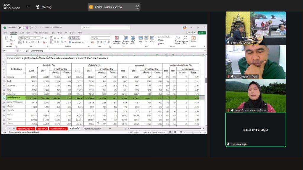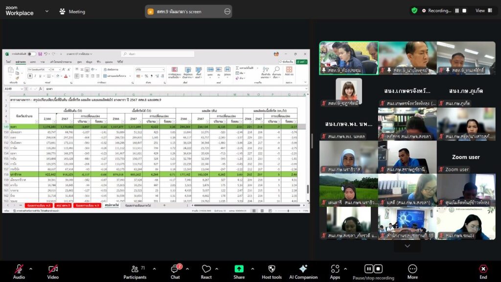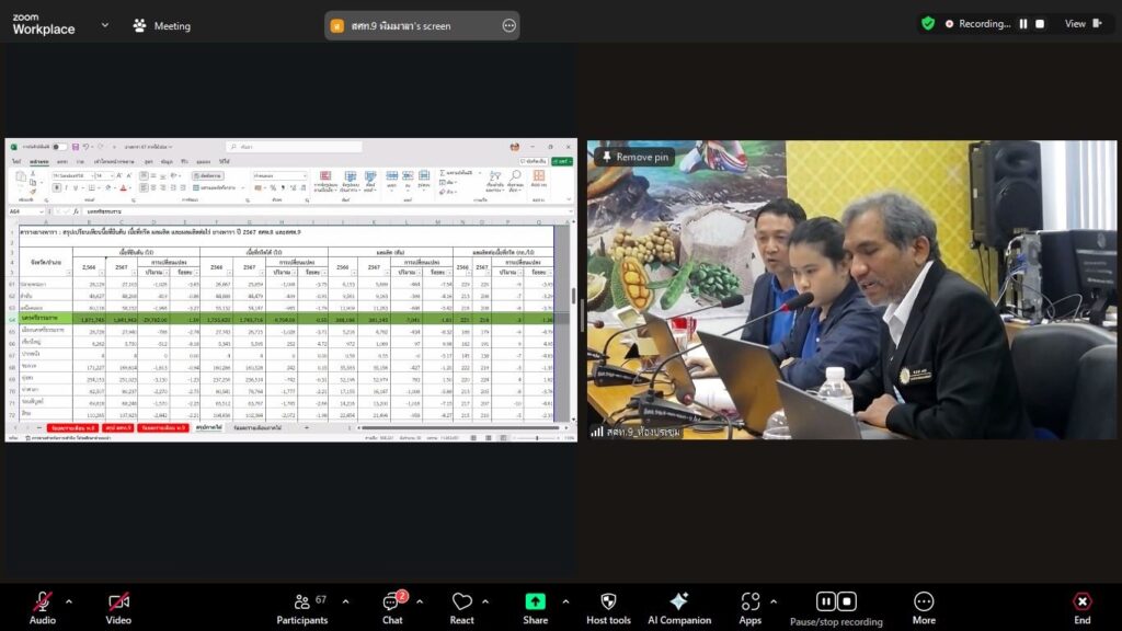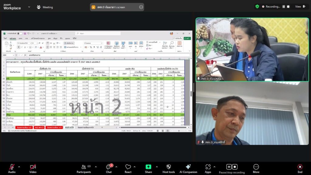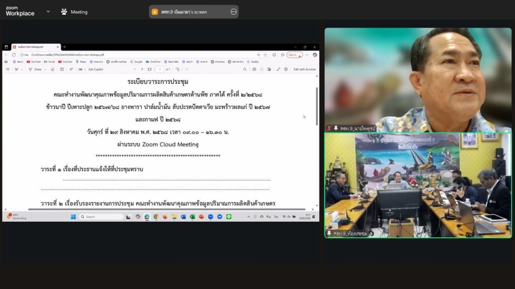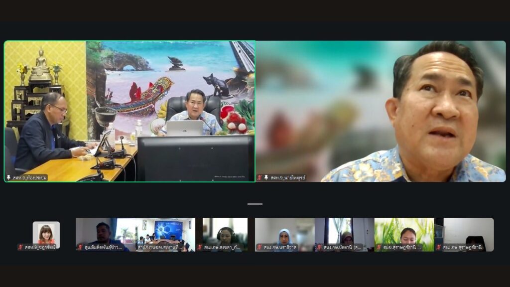 นายไพฑูรย์ สีลาพัฒน์ ผู้อำนวยการ สำนักงานเศรษฐกิจการเกษตรที่ 9 (สศท.9) เป็นประธาน และมีนายนิกร แสงเกตุ ผู้อำนวยการสำนักงานเศรษฐกิจการเกษตรที่ 8 (สศท.8 ) ร่วมเป็นประธานการประชุมคณะทำงานพัฒนาคุณภาพข้อมูลปริมาณการผลิตสินค้าเกษตรด้านพืชภาคใต้ ครั้งที่ 2/2568 ณ ห้องประชุมสำนักงานเศรษฐกิจการเกษตรที่ 9 ผ่านระบบ ZOOM Cloud Meetings